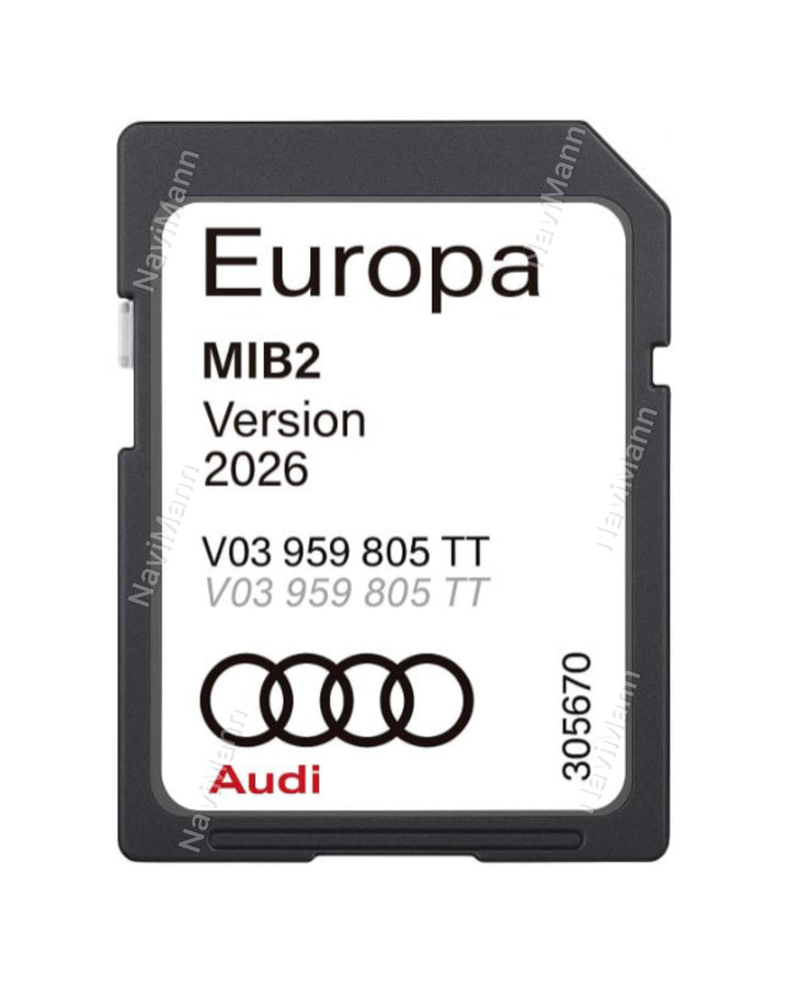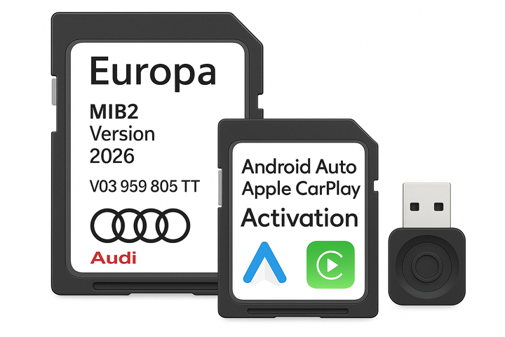 Audi MIB2 Navigatiekaartupdate VK en Europa 2025. Alleen voor Audi 4G MIB2 navigatiesystemen. Onderdeelnummer: V03959805TT
